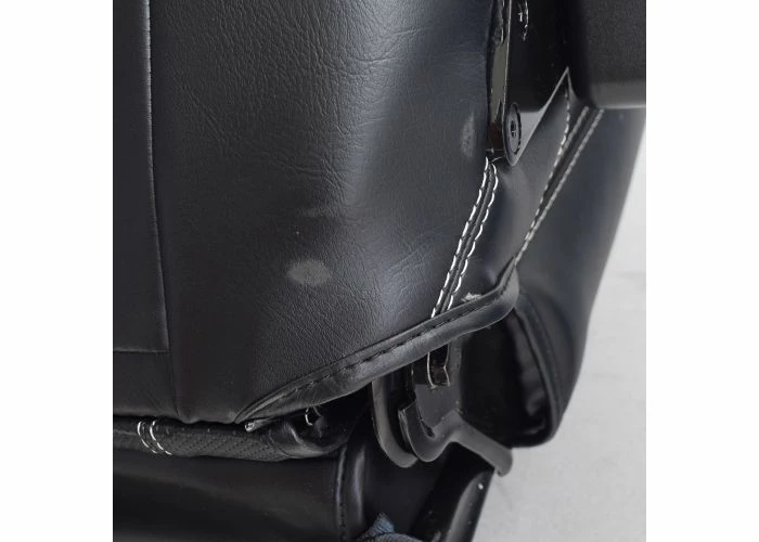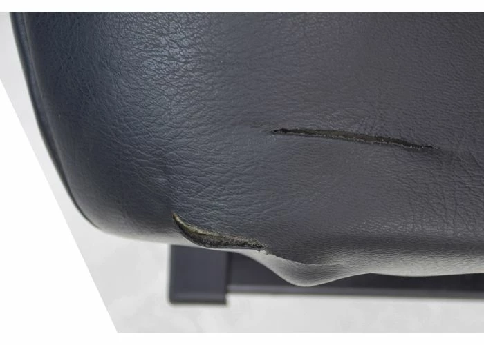 Note: This seat assembly has two cuts in the upholstery near the bottom left corner of the seat. One of the armrests has a scratch on the side. There is a scuff mark on the backrest of the seat.