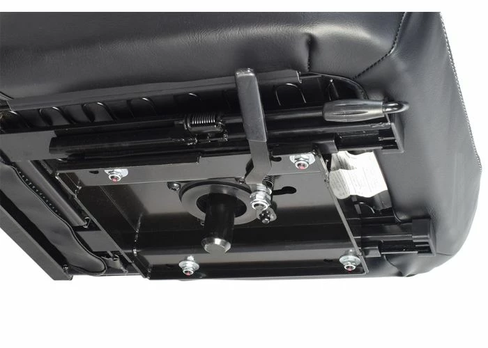 20″ wide seat base on a sliding-track seat plate with lever
