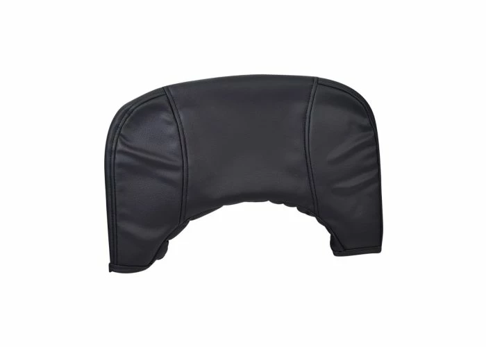 The black vinyl is easy to wipe clean, and just a squirt of window cleaner is all that it takes if you need to get really stubborn stains off of it. This cover comes with an inner foam cushion and secures with hook & loop (Velcro) tabs.