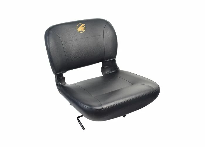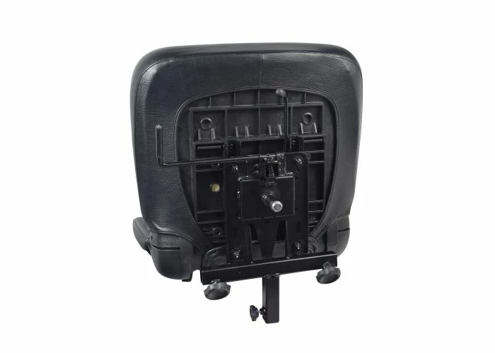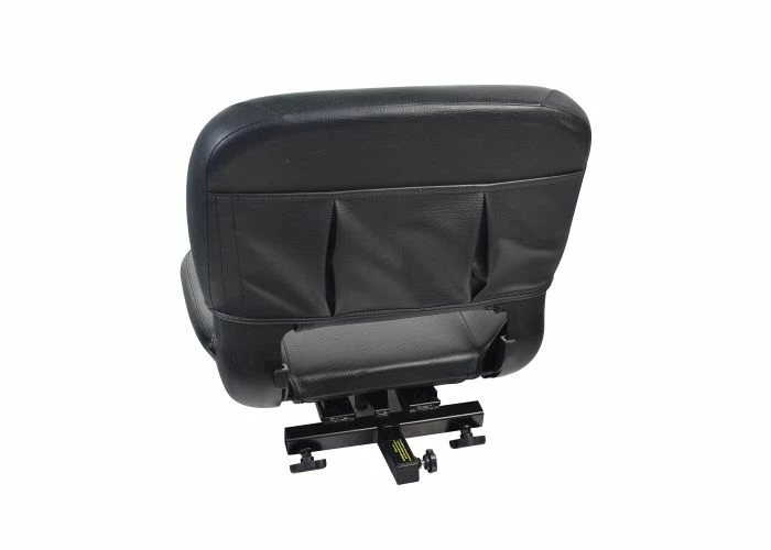 The sliding swivel seat plate stadium-style seat measures 20″ in width and 18″ in depth. The seat is covered in an easy to clean textured black vinyl upholstery that keeps maintenance to a minimum.