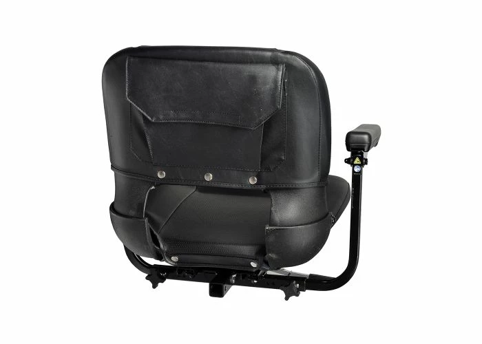 Here is the complete 18″ wide black vinyl molded seat assembly for Pride mobility scooters. Our Go-Go scooter seat is the same nominal 18″ width x 17″deep x 13″ depth seat size that is a perfect replacement for the old seat on may Pride mobility scooters. With more padding than some earlier seats, this unit will add an additional 2″ in seat height. This Go-Go and Pride seat assembly includes the molded plastic seat back, the seat base, both black vinyl seat back and base covers, along with the seat frame. In addition, we even include the two armrests with 10″ armrest pads. And we give you all this for one low price.