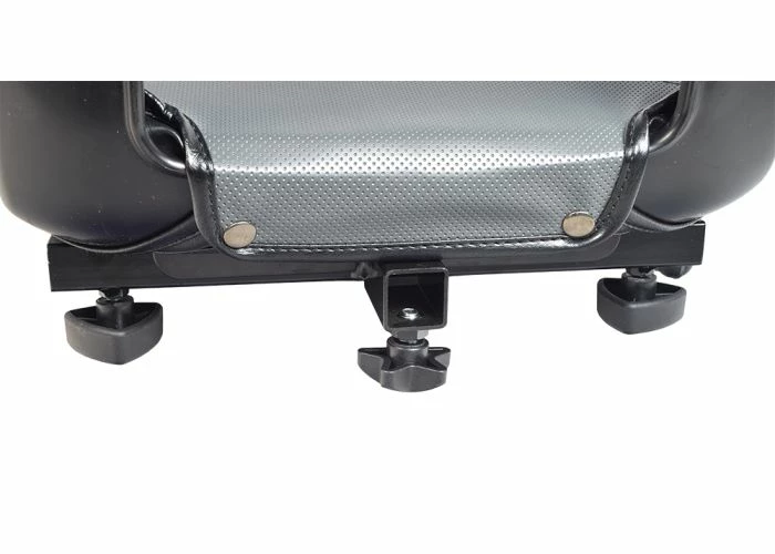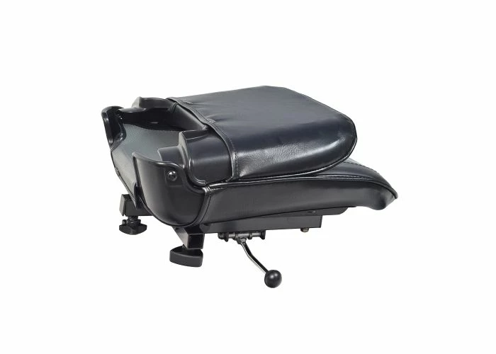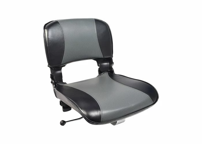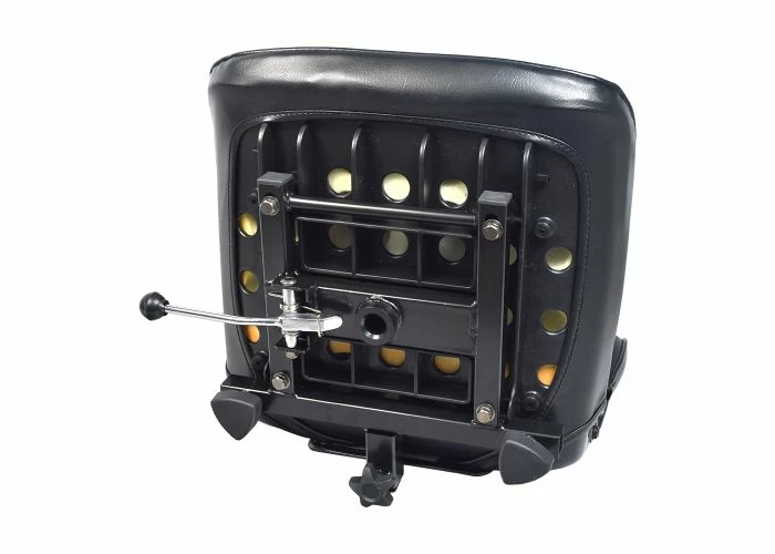 This stadium-style seat measures 17″ in width, and 16″ in depth. The back measures 14″ in height. This is the factory original seat for the Spitfire models, and it comes equipped with the steel seat base frame and lever.