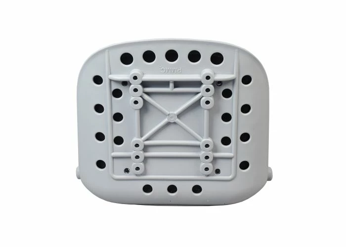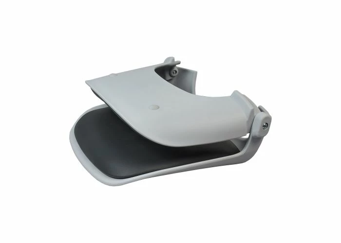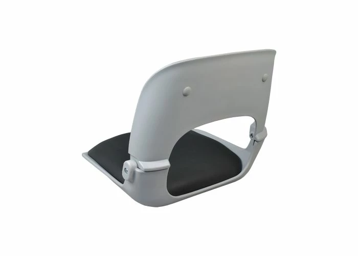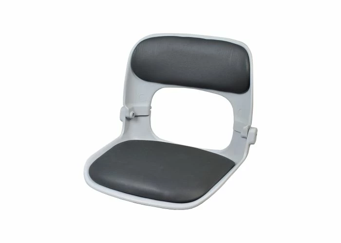 This light gray plastic seat features a darker gray vinyl padding on the base and back