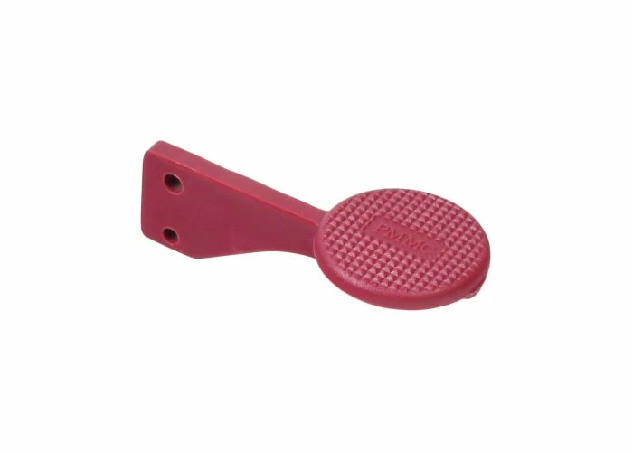 Unlike the more common metal tubes used on most seat levers, this sporty red model is made of a more durable red plastic