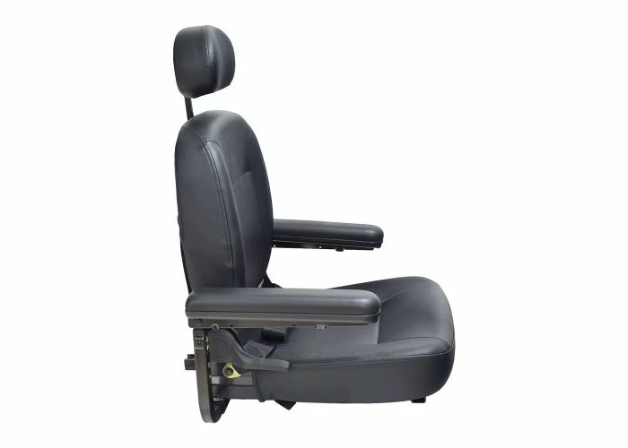 This complete seat assembly includes both armrests, the headrest, seat plate, a 60″ lap belt, and more