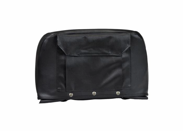 The black vinyl seat back cover for the Pride Victory 10 (SC610/SC710) mobility scooter uses snaps for easy removal